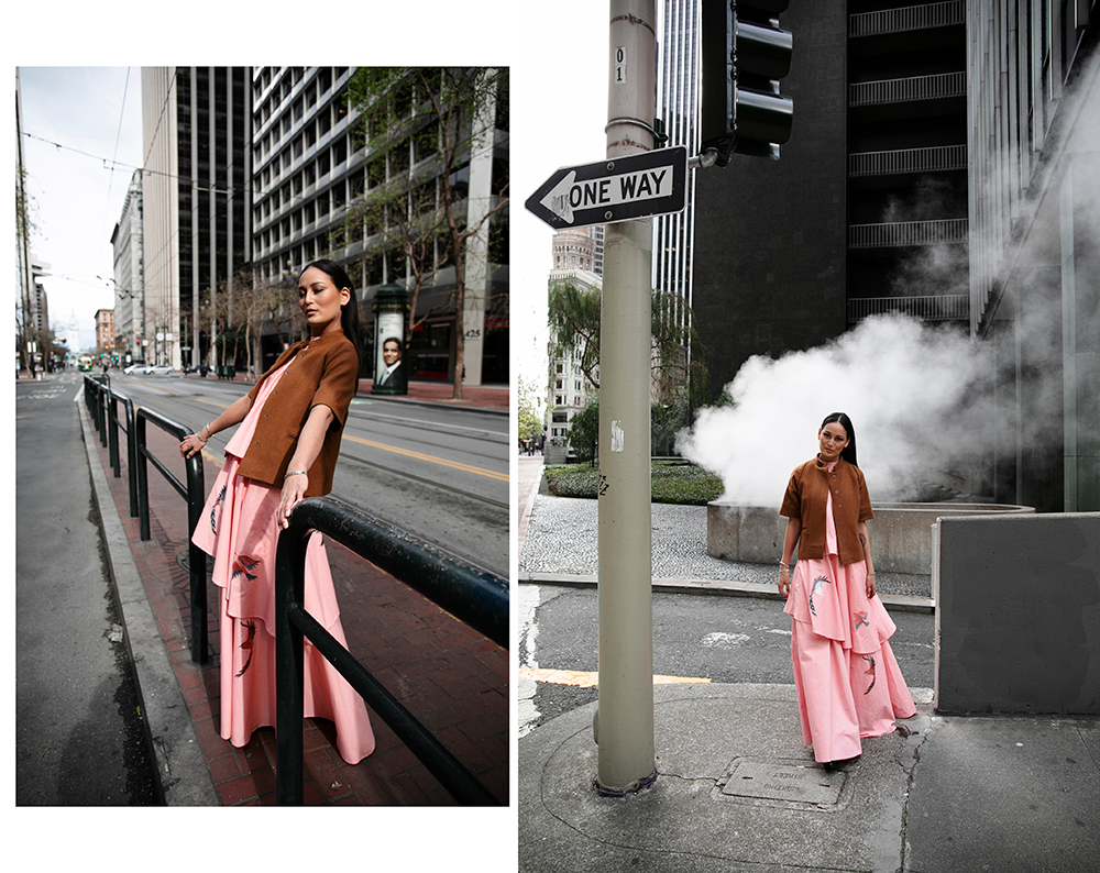 Editorial for the Fashion Incubator of San Francisco highlighting local ethical and sustainable fashion brands Love is Project, Aagati, A by Anubha, Tonlé, Diarrblu, Taylor Jay, and Freda Salvador. For the concept, I wanted to show the connection between sustainability and the vibrancy of the city.